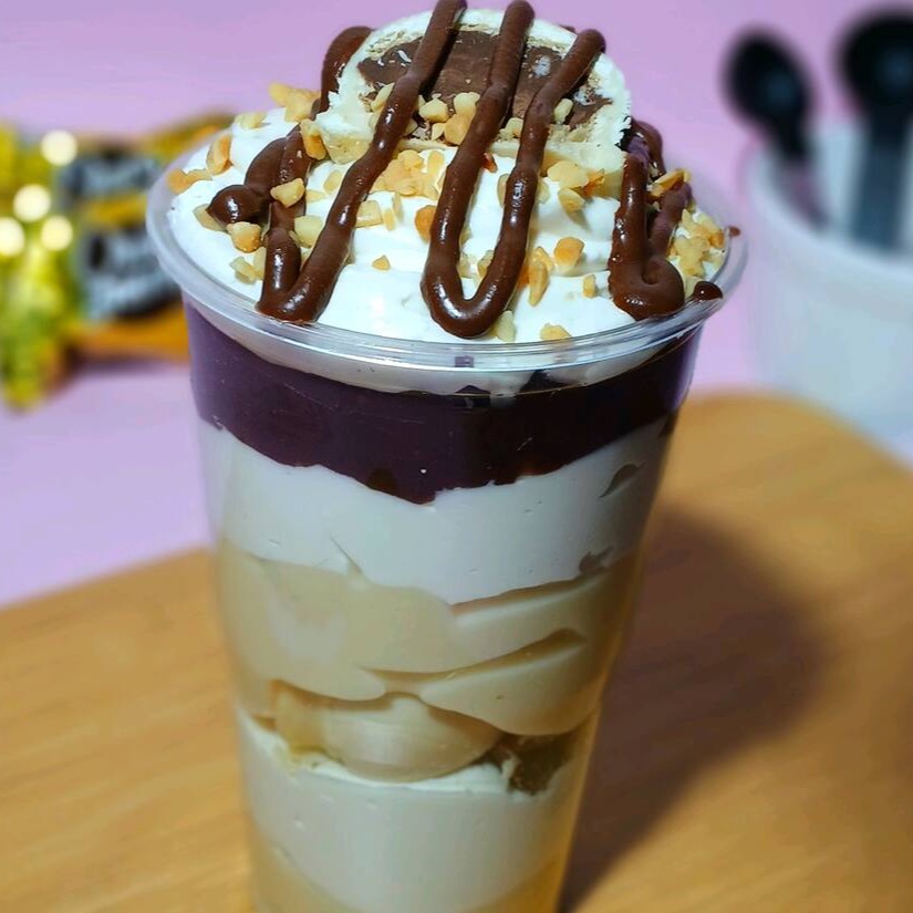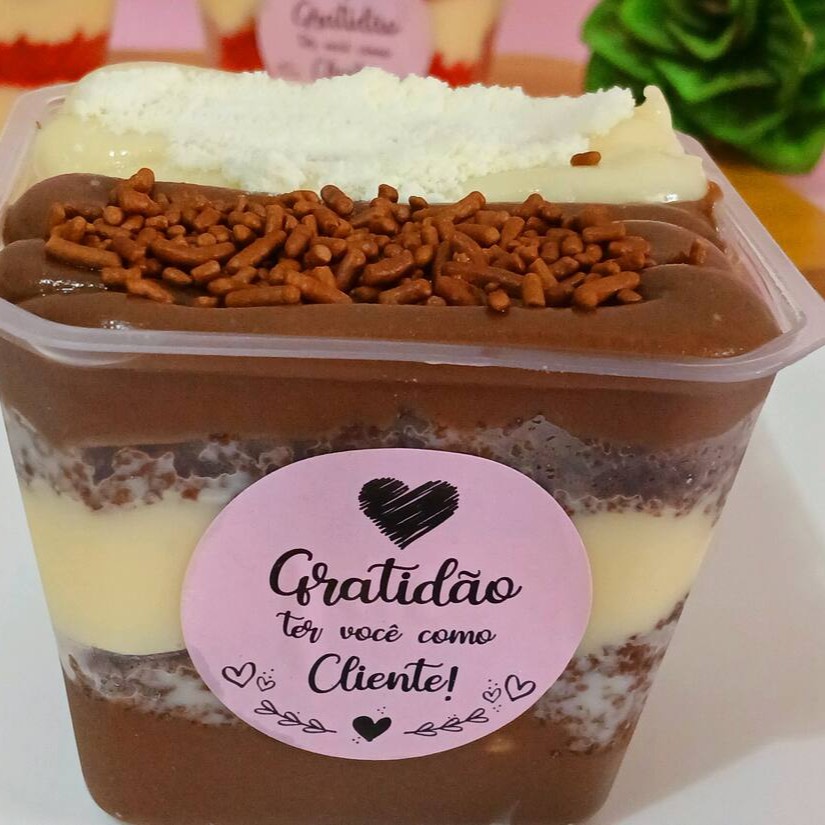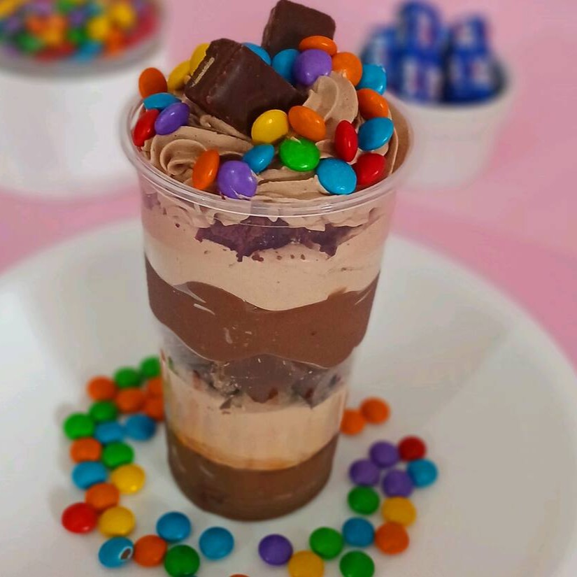 Esse copo da Felicidade Trilogia é sensacional com três itens chocolatudo camadas de mousse de chocolate com brigadeiro cremoso Bis brownie e Confete um sabor único. Serve 1 pessoa (Aprox 300ml)