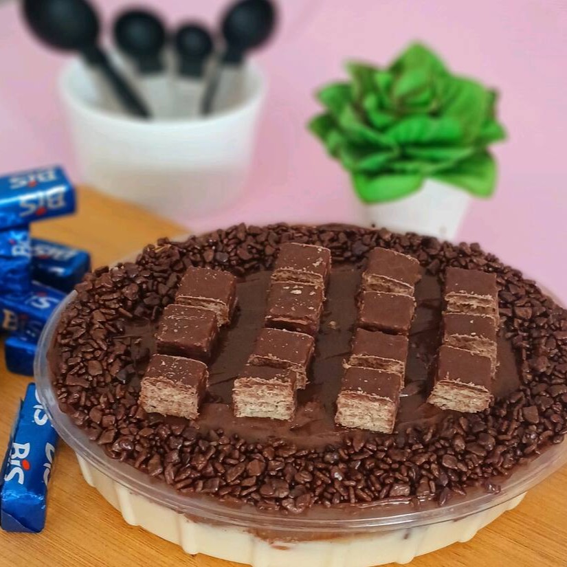 Uma maravilhoso Pave com muito Bis camadas de creme branco gourmet brigadeiro gourmet e biscoito de maisena para os apaixonados em Bis.