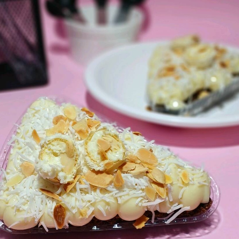 A pizza brownie com irresistível brownie macio uma casquinha crocante camadas de recheio de chocolate branco com camadas de mousse de chocolate branco e o kit Kat maravilhoso!!!