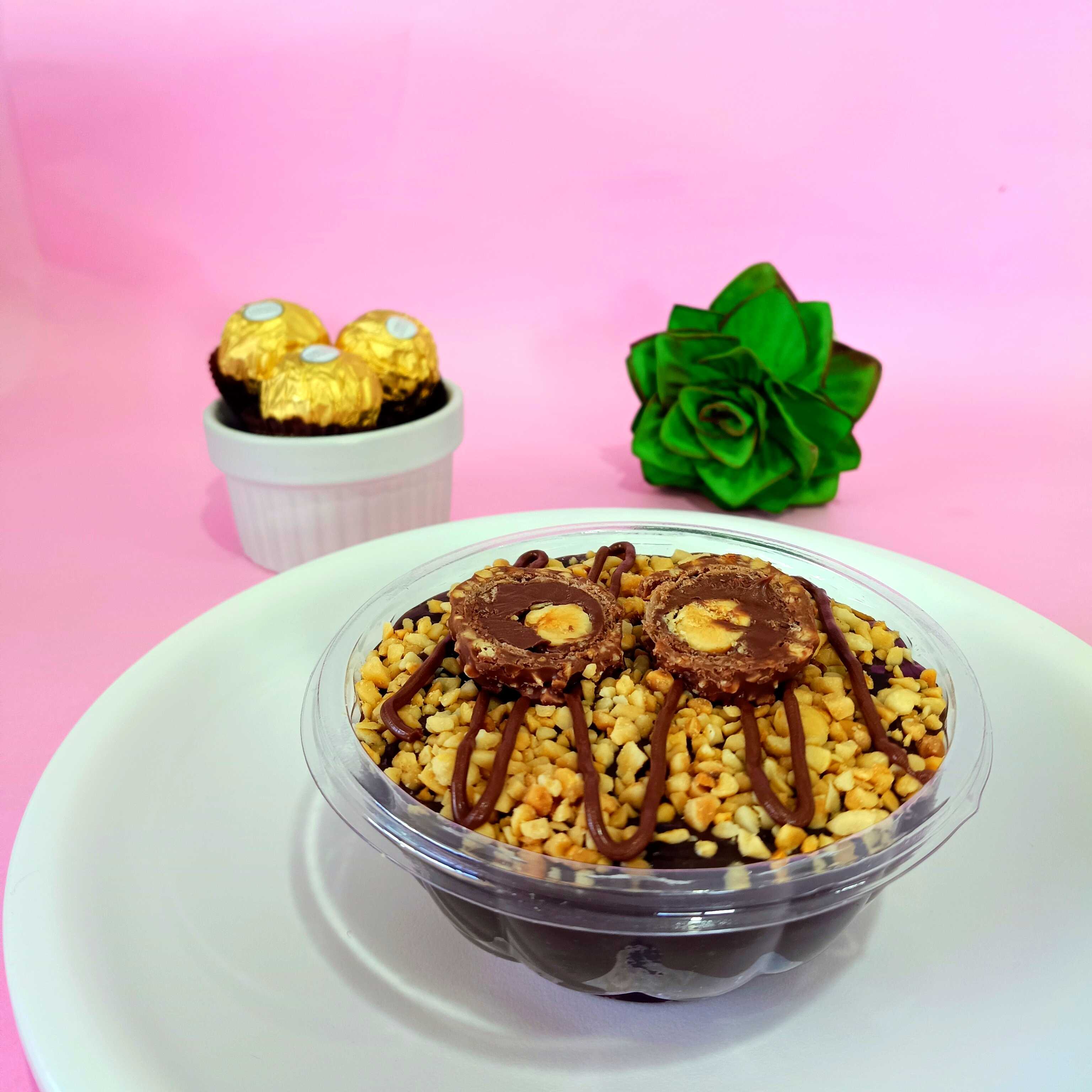 Um bombom composto por um brigadeiro gourmet camadas de brownie com fios de Nutella amendoim e o irresistível Ferrero Rocher