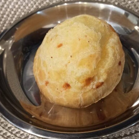 Pão de queijo tostado na chapa, recheado de queijo, tomate e orégano.