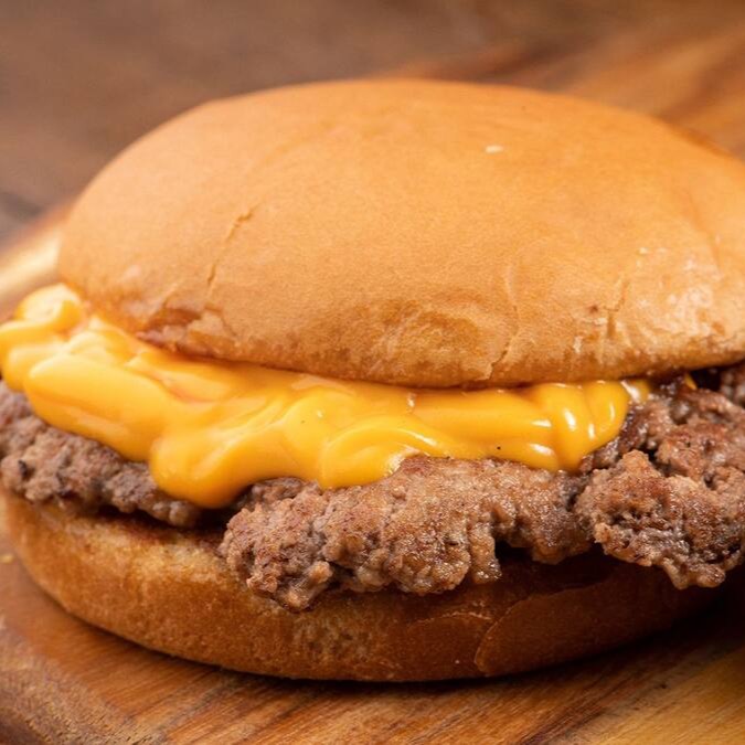 Pão, Hambúrguer artesanal 80g e cheddar.