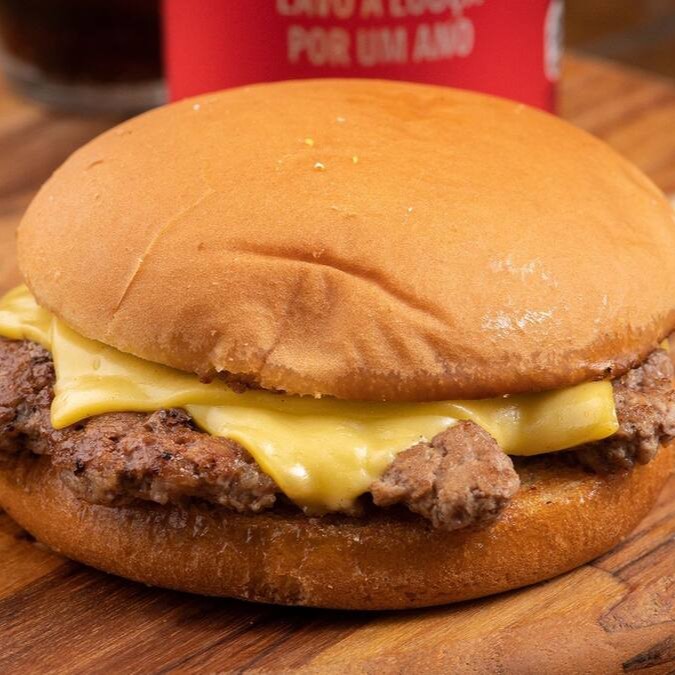 Pão, Hambúrguer artesanal 80g e queijo prato.