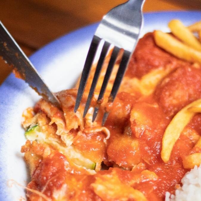 Acompanha arroz e fritas
