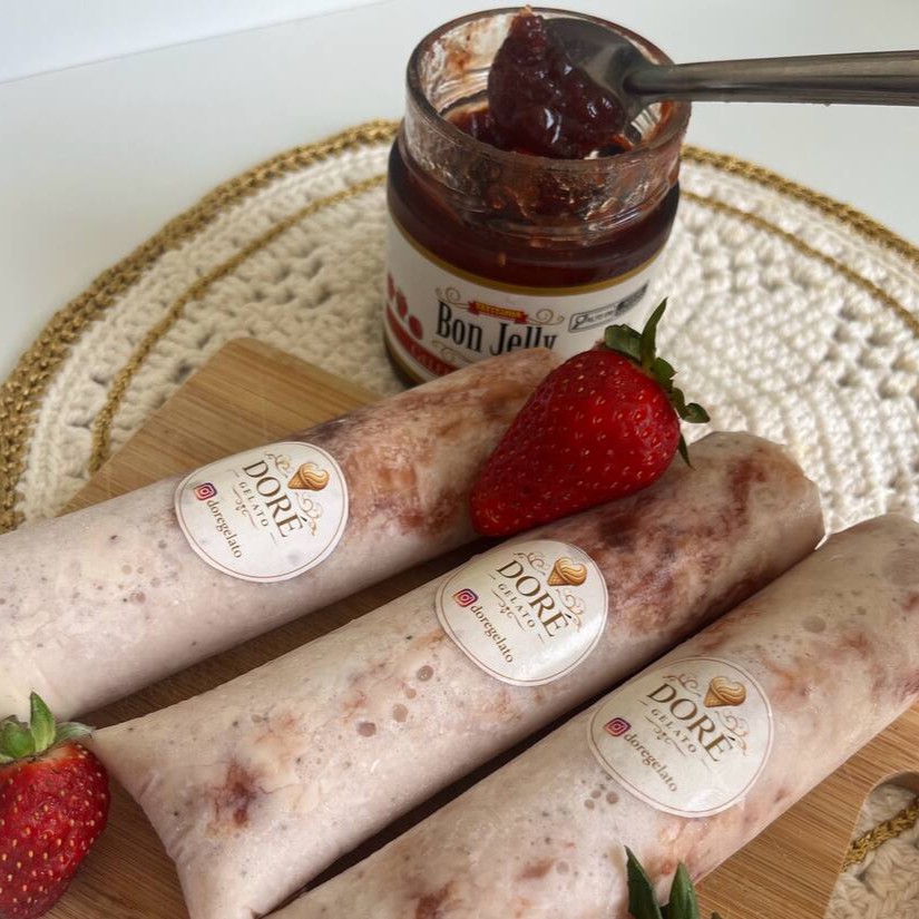 Gelato De Morango Com Chocolate Branco E Geleia Morango