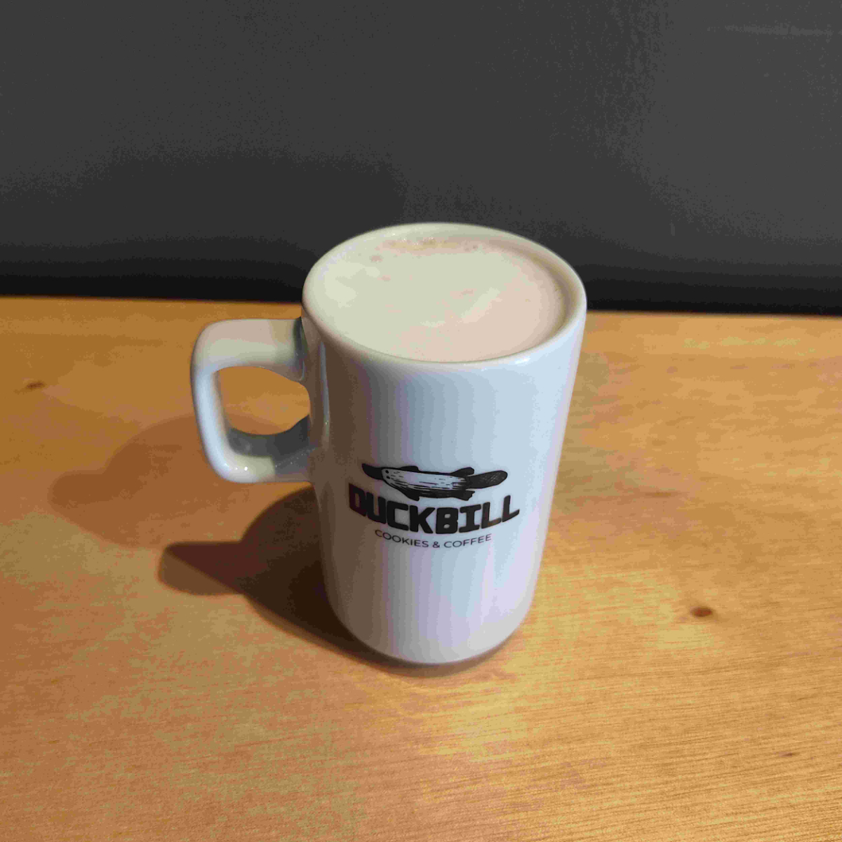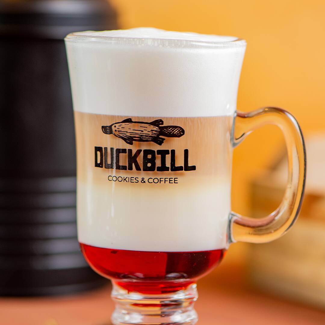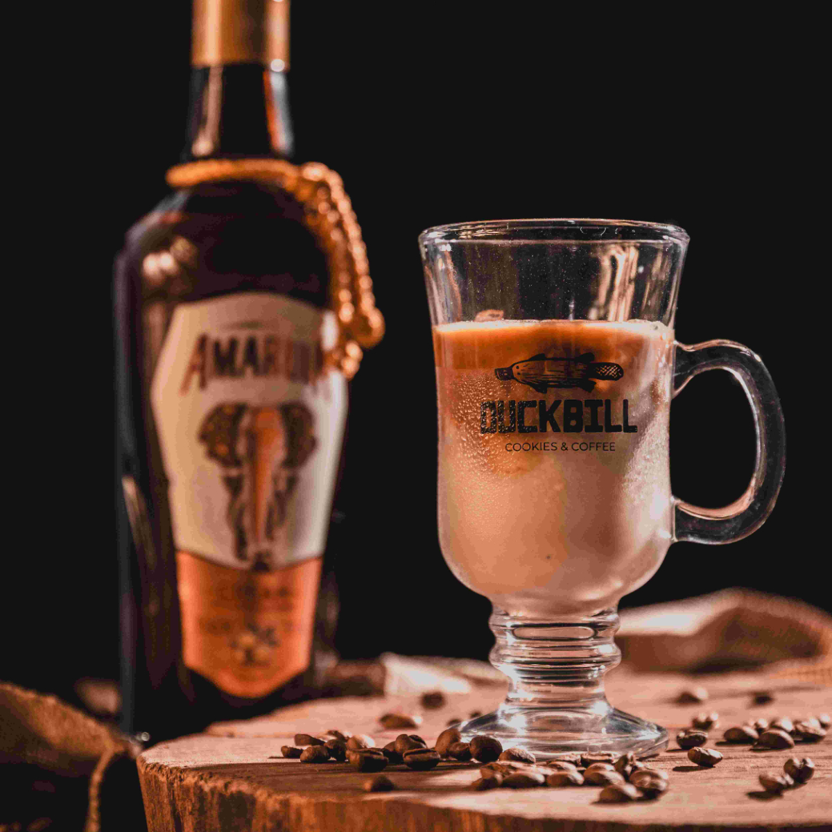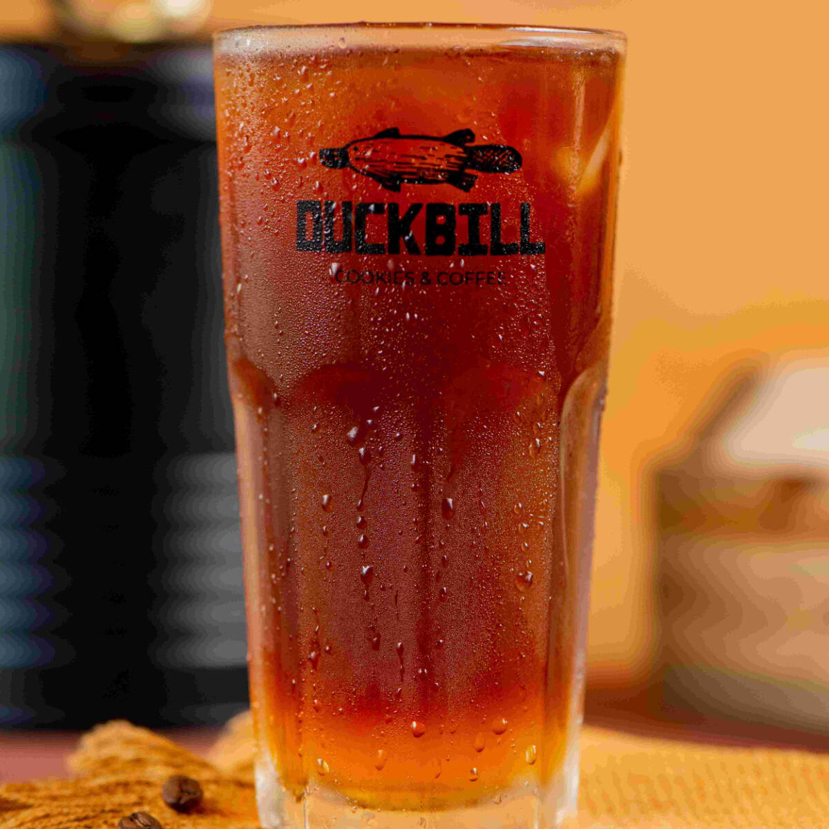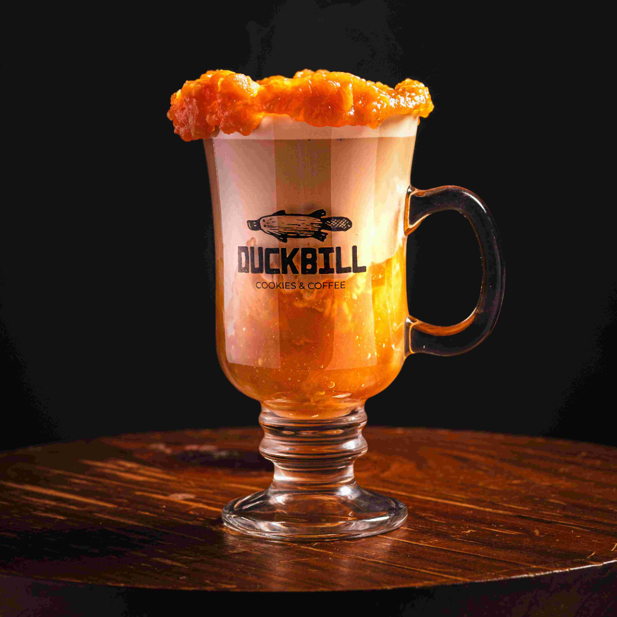 Sorvete empanado com farofa de cookie Duckbill e finalizado com calda de caramelo e delicioso espresso especial Duckbill.