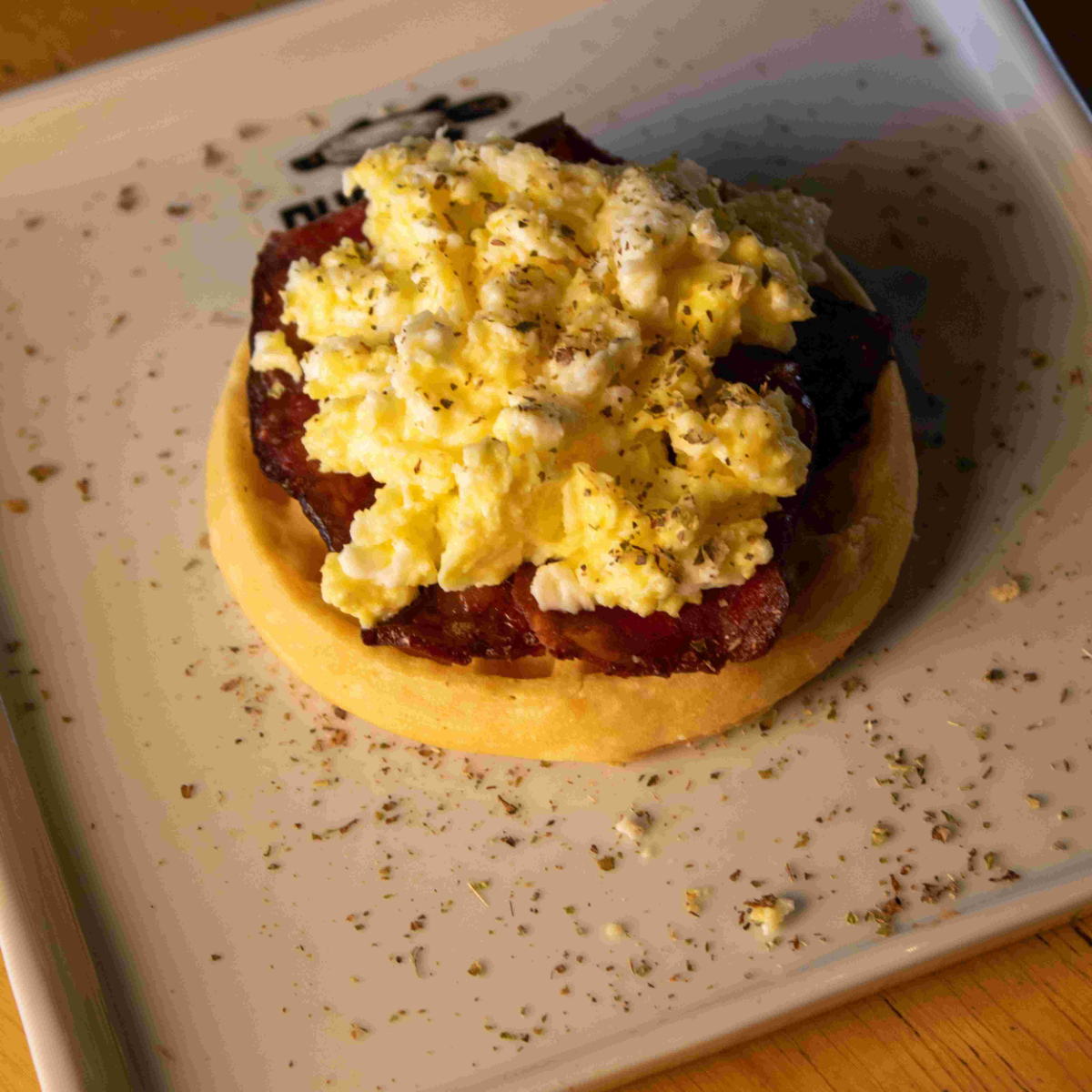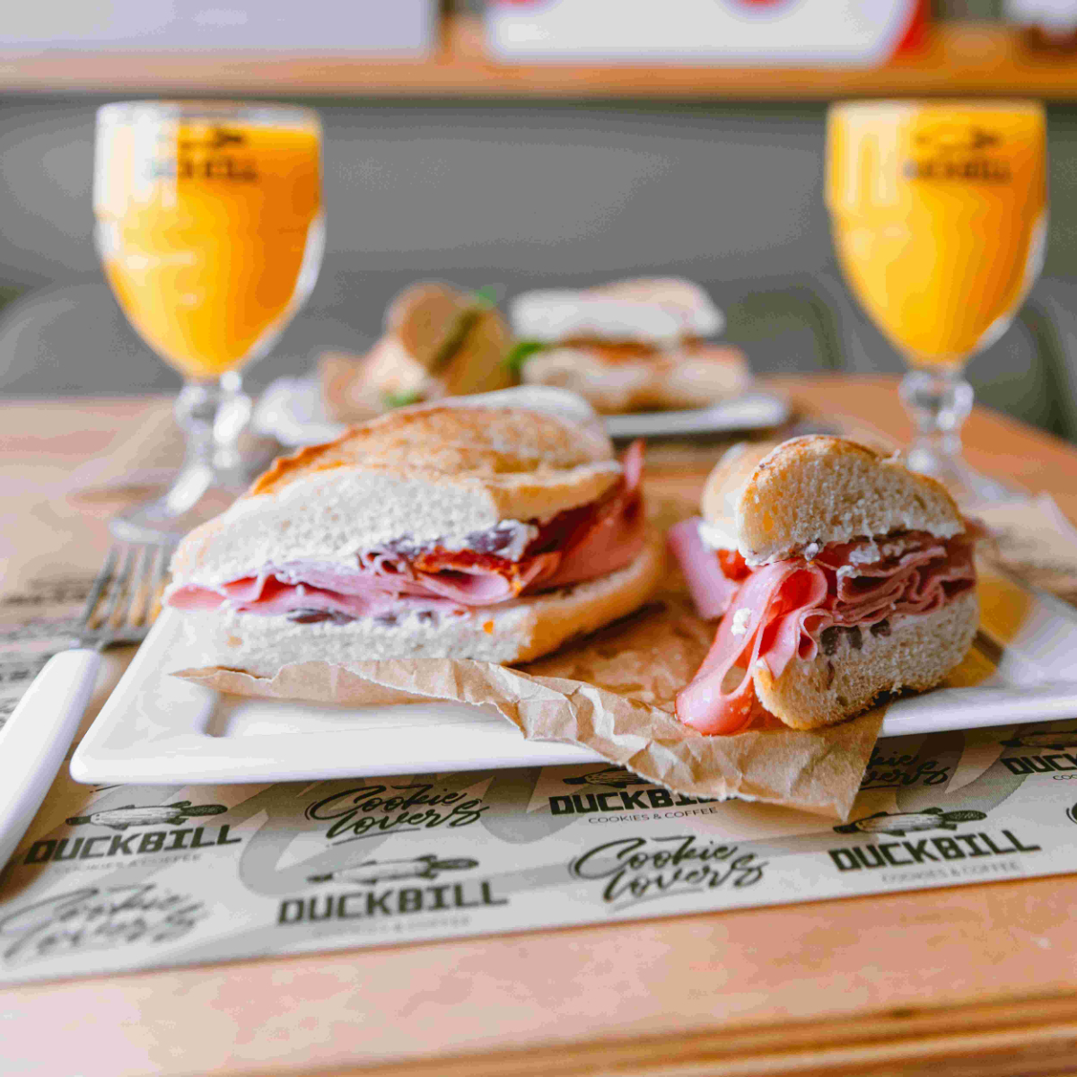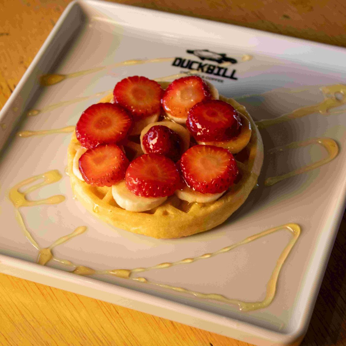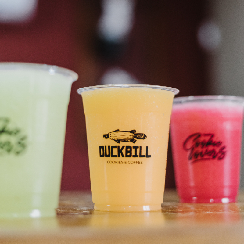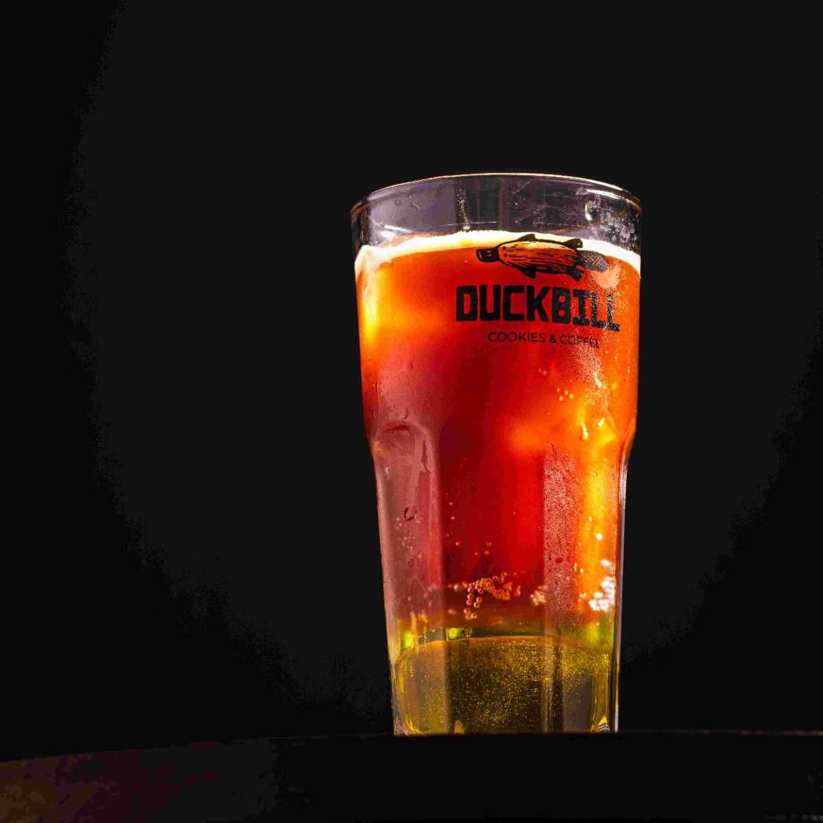 Sorvete empanado com farofa de cookie Duckbill e finalizado com calda de caramelo e delicioso espresso especial Duckbill.