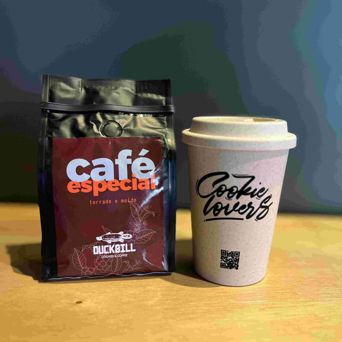 1 Café Especial torrado e moído (250g) + Copo Duckbill (Copo Bege)
