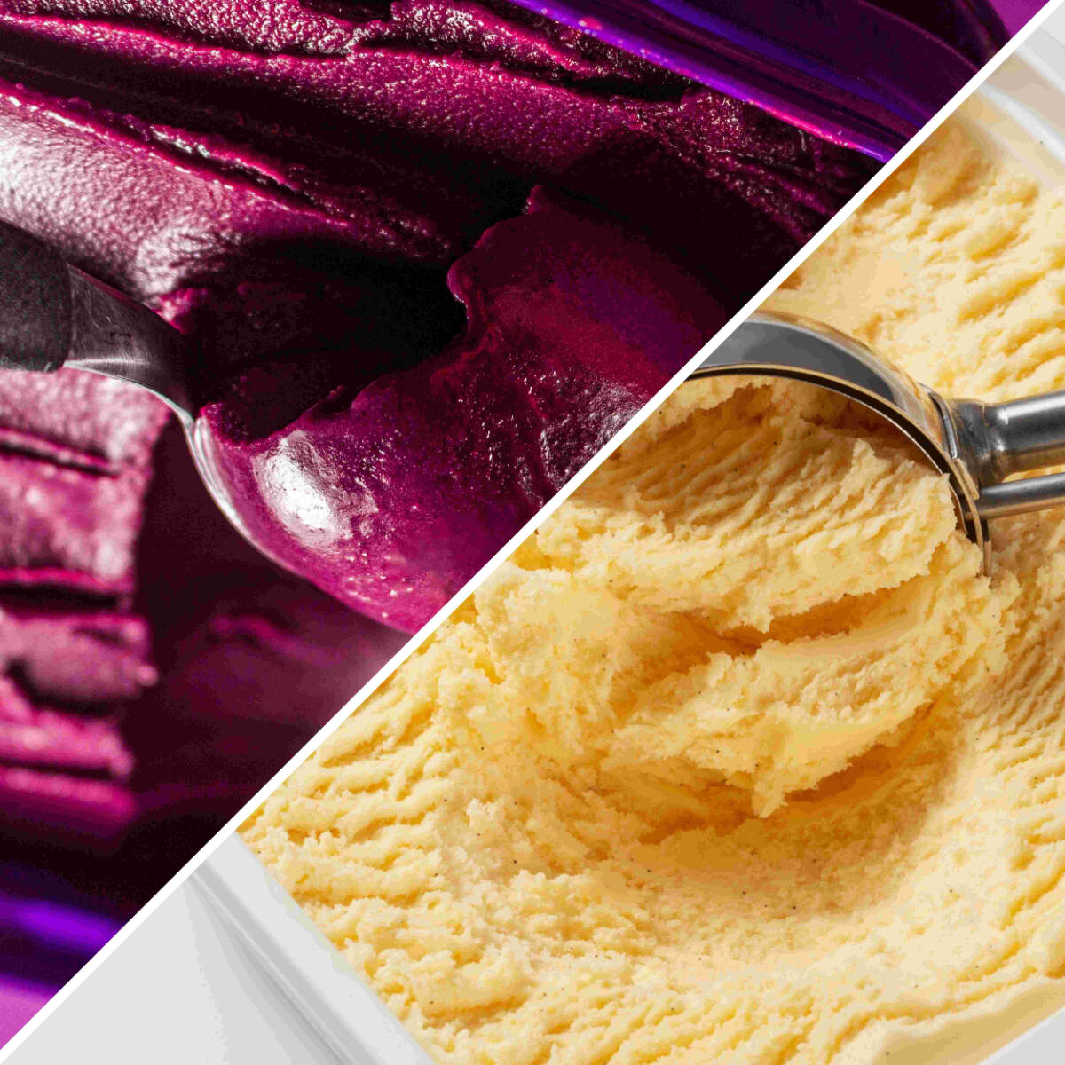 Massa 100% cacau, recheio de chocolate ao leite e chocolate meio amargo, toppings ao leite;