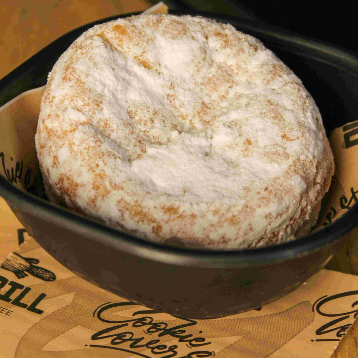 Um cookie a sua escolha com doce de leite, chantilly e morango (categoria clássico ou especial).