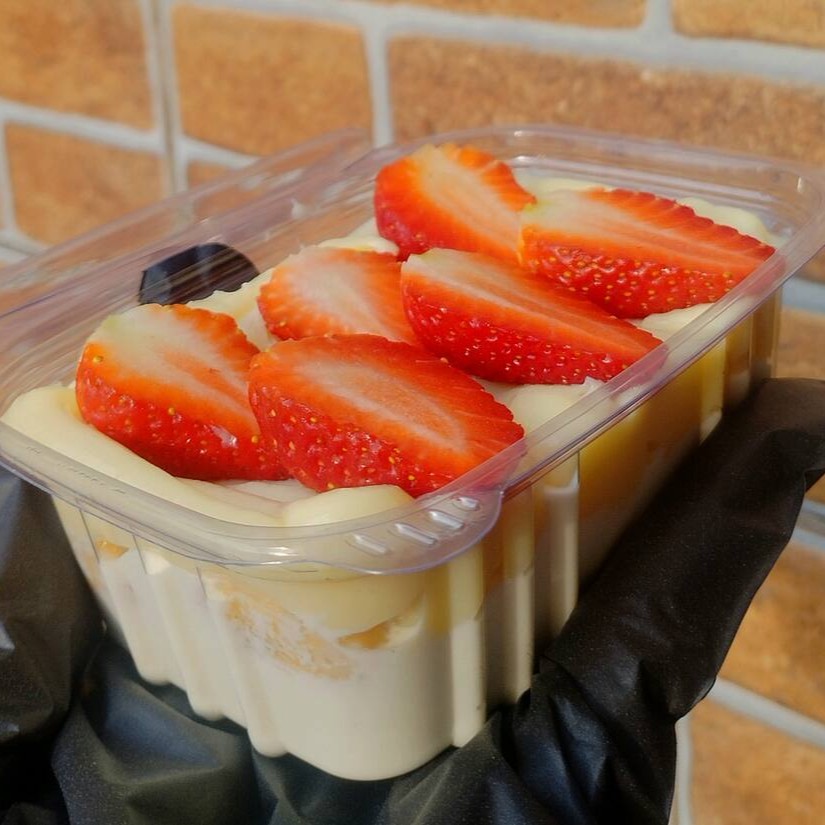 Feito com creme nuvem de ninho, bolacha maizena, com creme de leite ninho e morangos! Aprox 250g