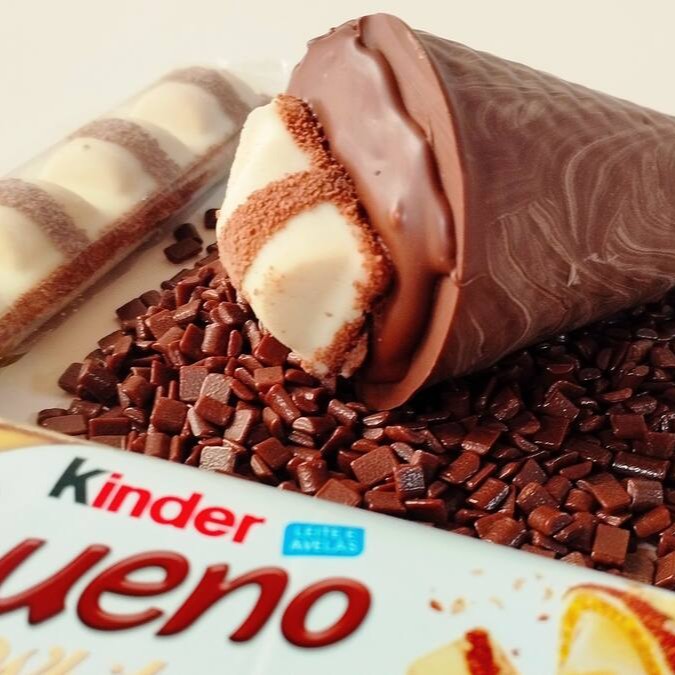 Nosso cone trufado de Kinder, sua casquinha é banhada na cobertura Blend, é recheado de creme de leite Ninho, pedaços de Kinder e brigadeiro cremoso de chocolate nobre, finalizando com um delicioso Kinder!