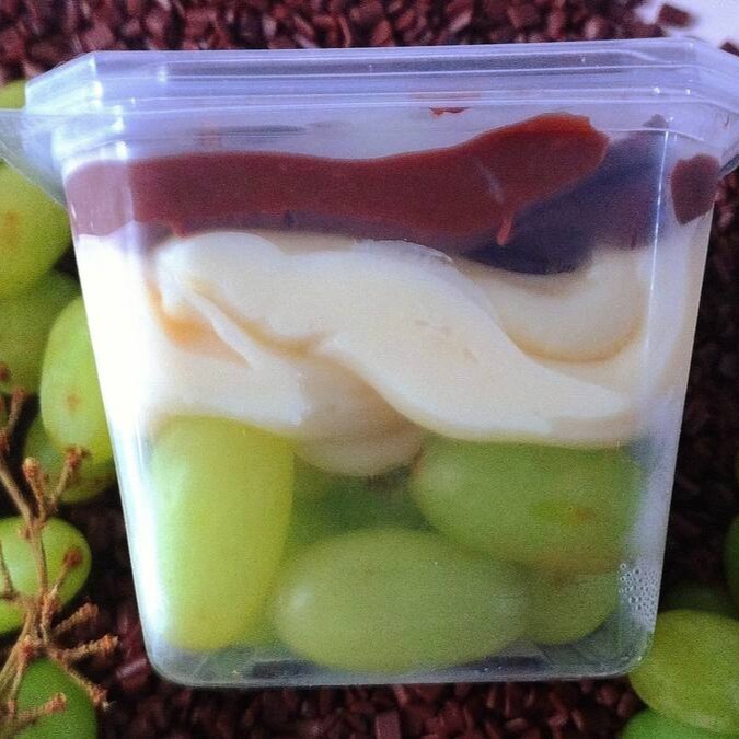Base de bolacha maizena, com creme de leite ninho com uvas verdes! Aprox 150g