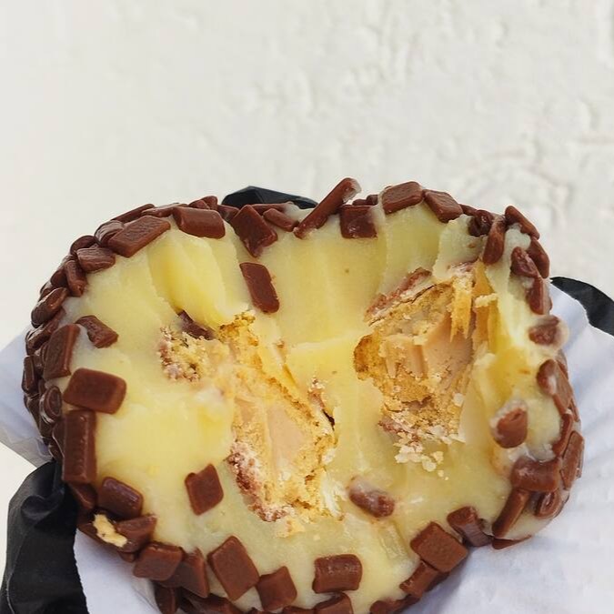 Um delicioso brigadeirão de Kinder, feito com massa de brigadeiro de Ninho, com 2 pedaços de Kinder, finalizando no Granule ao leite! Aprox 120g