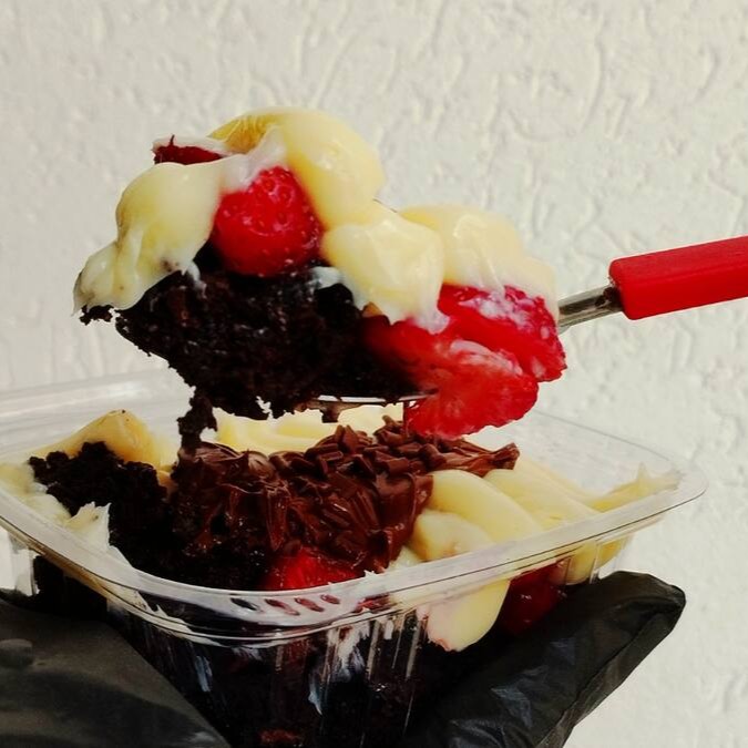 Nossa combo você leva para casa, 1 Escondidinho de Brownie com morangos + 1 Escondidinho de Brownie Chocolatudo com Uvas Verdes. Pagando menos