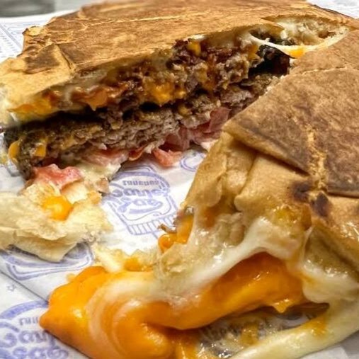 Pão tostado na manteiga, hambúrguer 100%bovino ou picanha 130g, muito queijo e muito Cheddar (opção de salada via chat)
