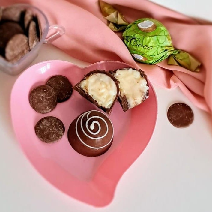 Feito com um delicioso chocolate Harold blend, e recheado com um delicioso creme de coco flocado.