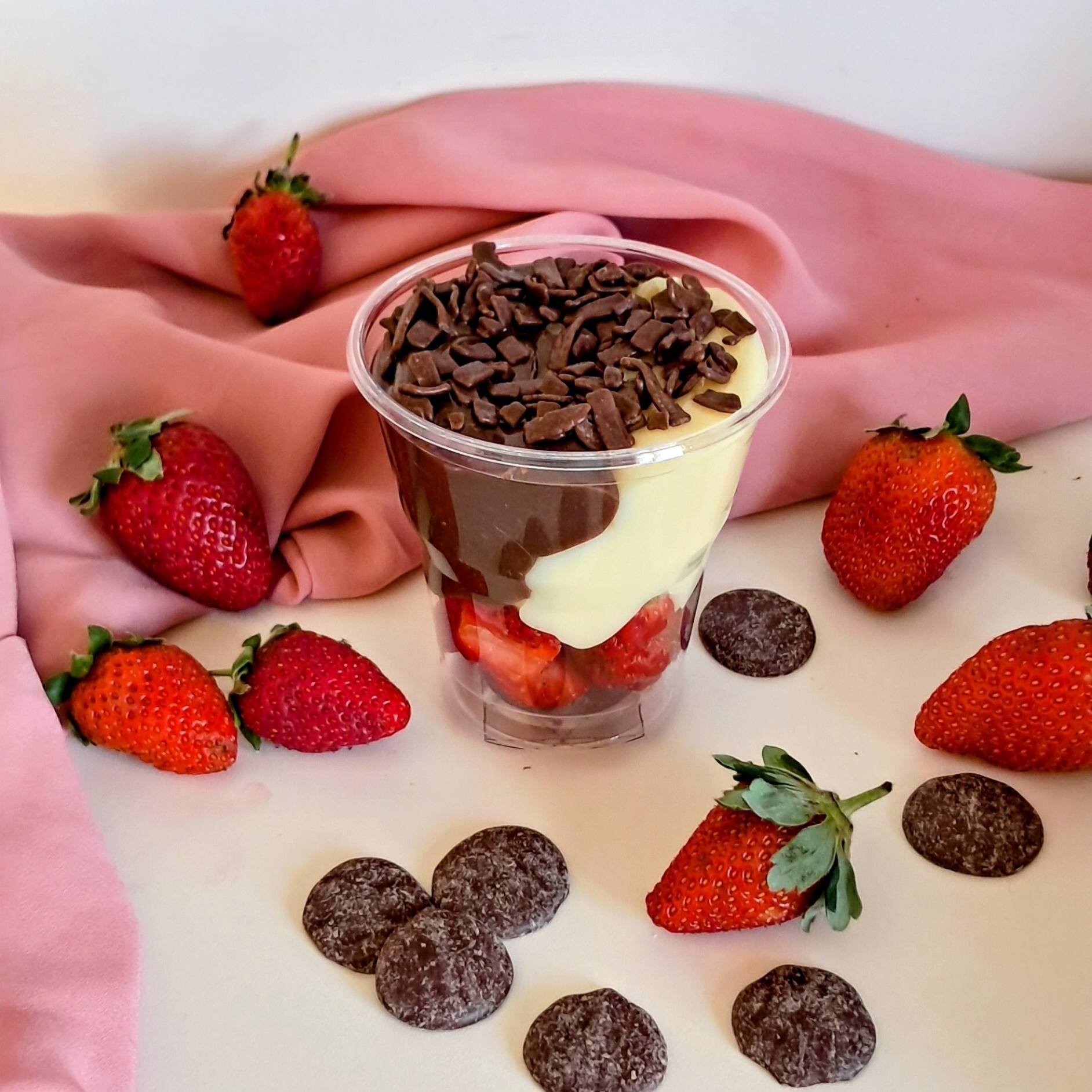 Pros amantes de doce, essa delicia de sobremesa vai te deixar com água na boca, feito com um delicioso brigadeiro gourmet e que envolve um delicioso e suculento morango, finalizado com granulé de chocolate super macio. Experimente e se apaixone!