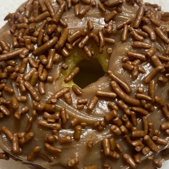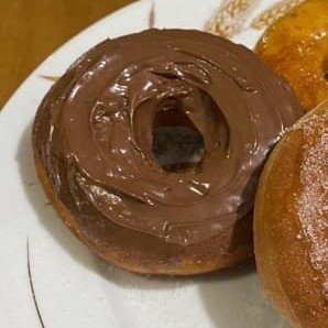 Delicioso donut artesanal, sem recheio, com cobertura de chocolate ao leite.