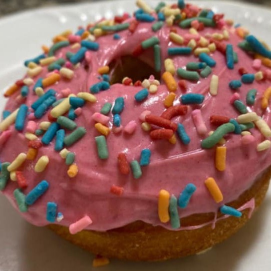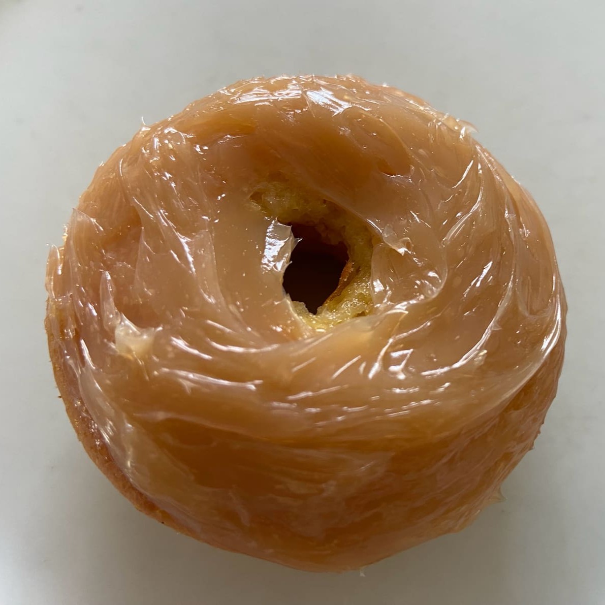 Delicioso donut artesanal, sem recheio, com cobertura de glazed especial.