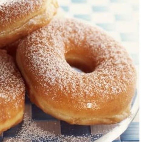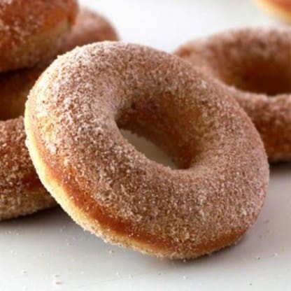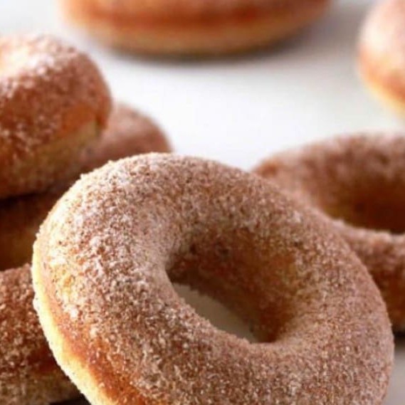Delicioso Donuts caseiro sem recheio, com cobertura de açúcar e canela.