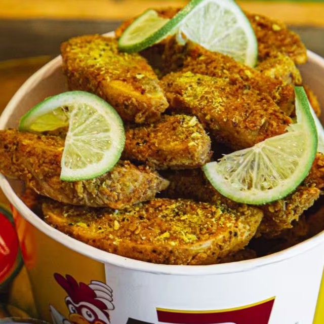 Balde pequeno do nosso frango frito, crocante por fora e macio por dentro + 1 molho.