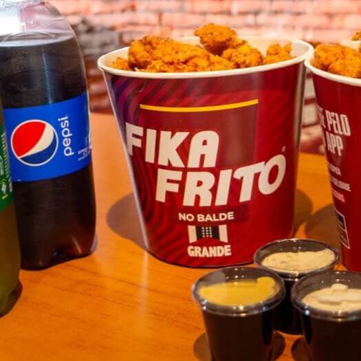 1 balde Grandes Fika Frito + 2 molhos + 1 balde de batata frita Fika Frito + 1 refrigerante de 1 litro