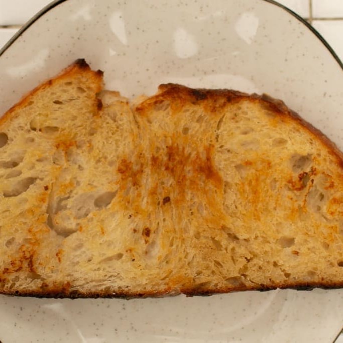 Toast com manteiga feito com pão italiano de fermentação natural