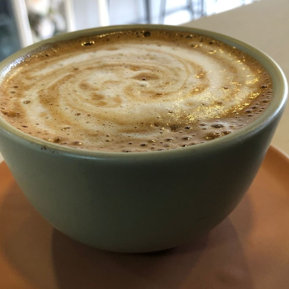 Café espresso de 75ml preparado com café gourmet com 125ml de leite e canela