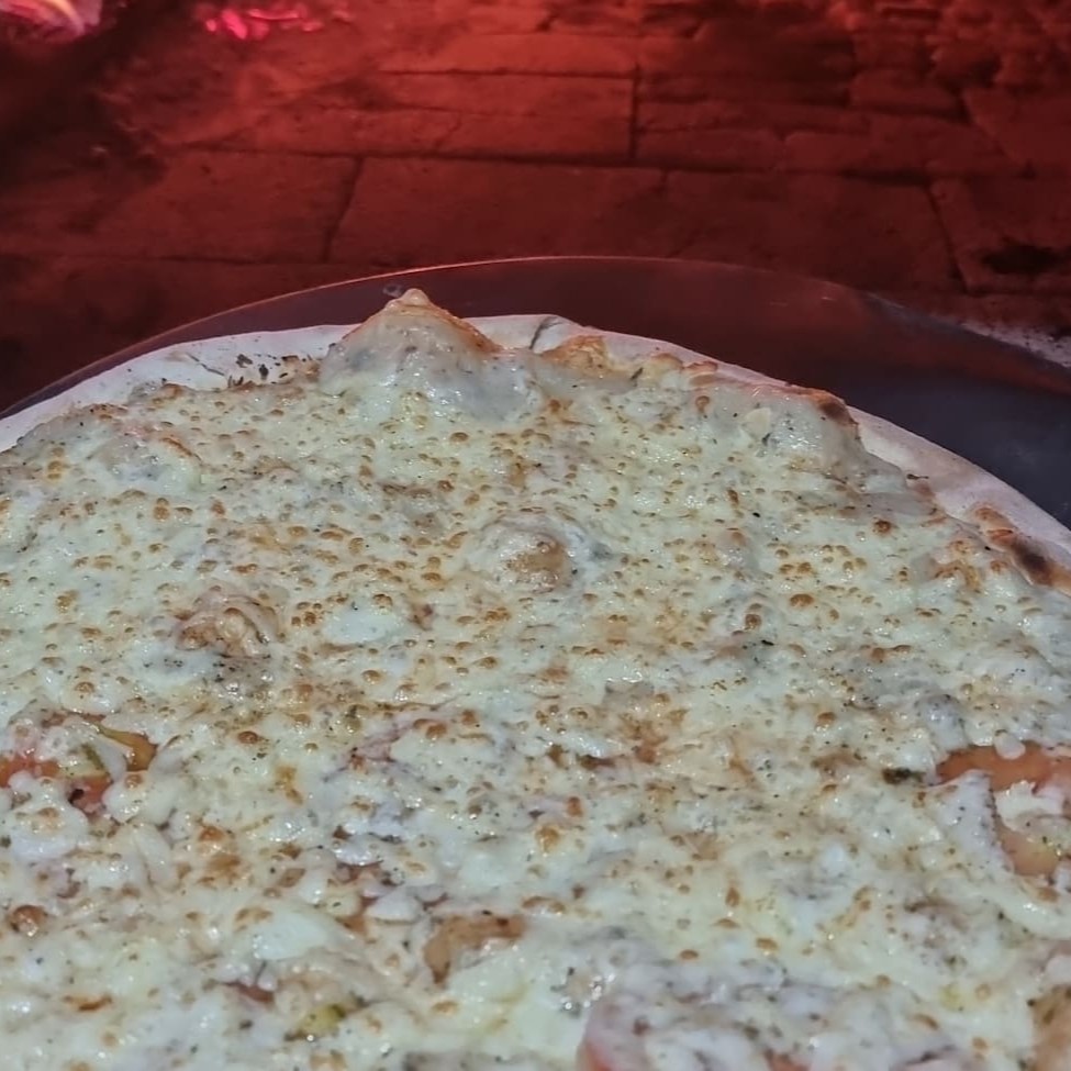Muçarela, frango, bacon e Catupiry.