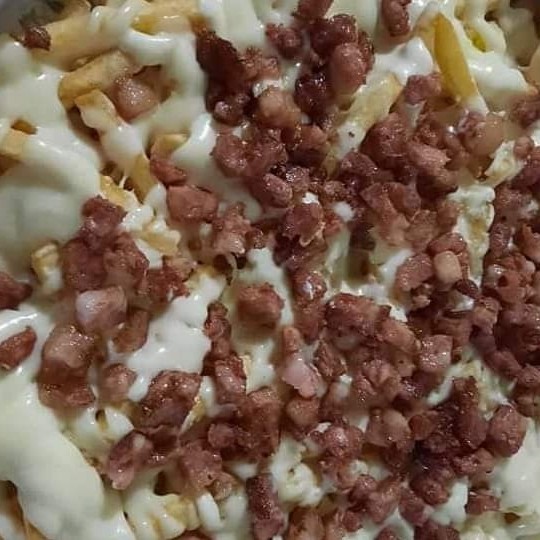 Batata, queijo e bacon. Escolha entre Catupiry e cheddar. (Aproximadamente 800g)