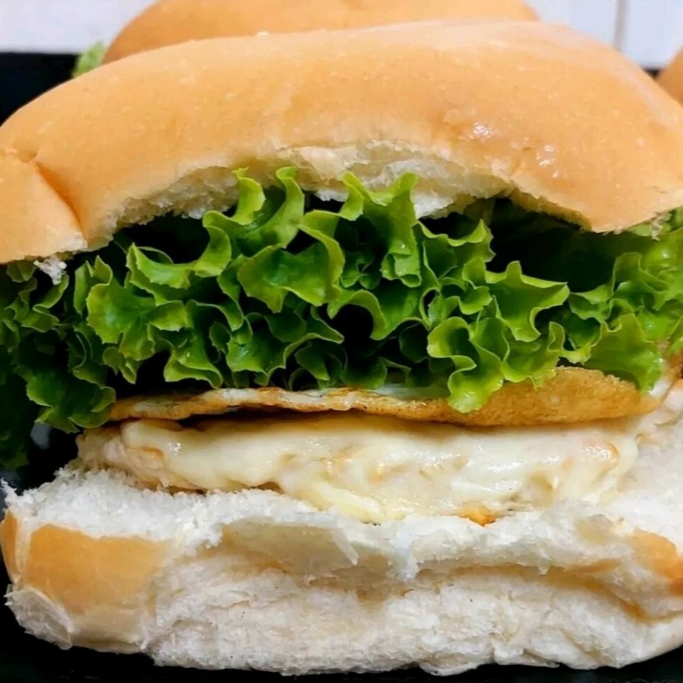 Pão, maionese, hambúrguer de frango 90g, mussarela, ovo, alface e tomate