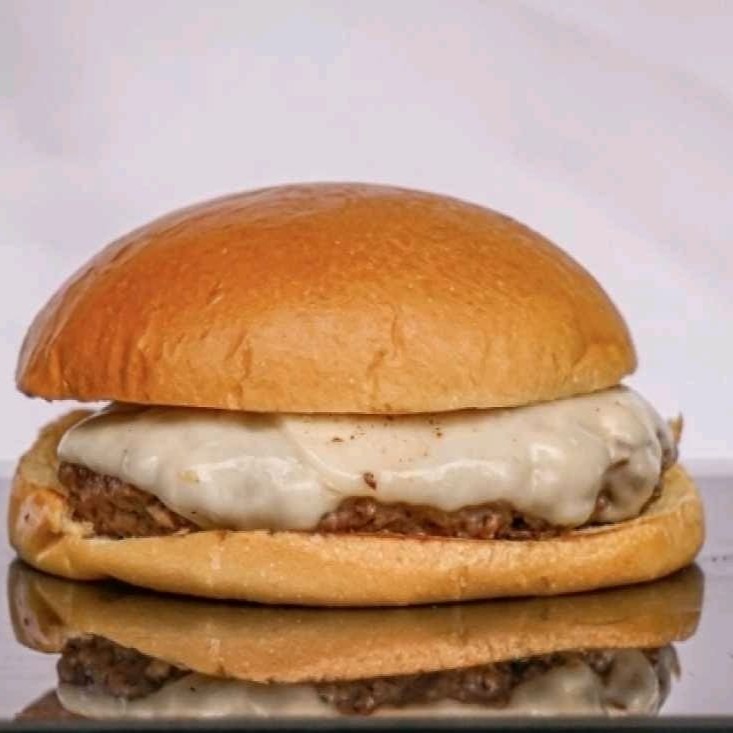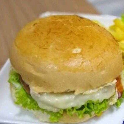Pão, maionese, hambúrguer 90g e mussarela