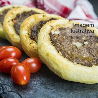 Esfiha com recheio de calabresa picante e cebola, para quem gosta de um toque apimentado.