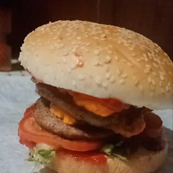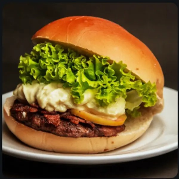 Pao , hambúrguer, alface, tomate ,cheddar bacon , maionese