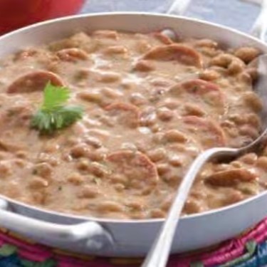 Marmita generosa de Linguiça Na Brasa Perdigão, arroz, feijão, vinagrete, farofa