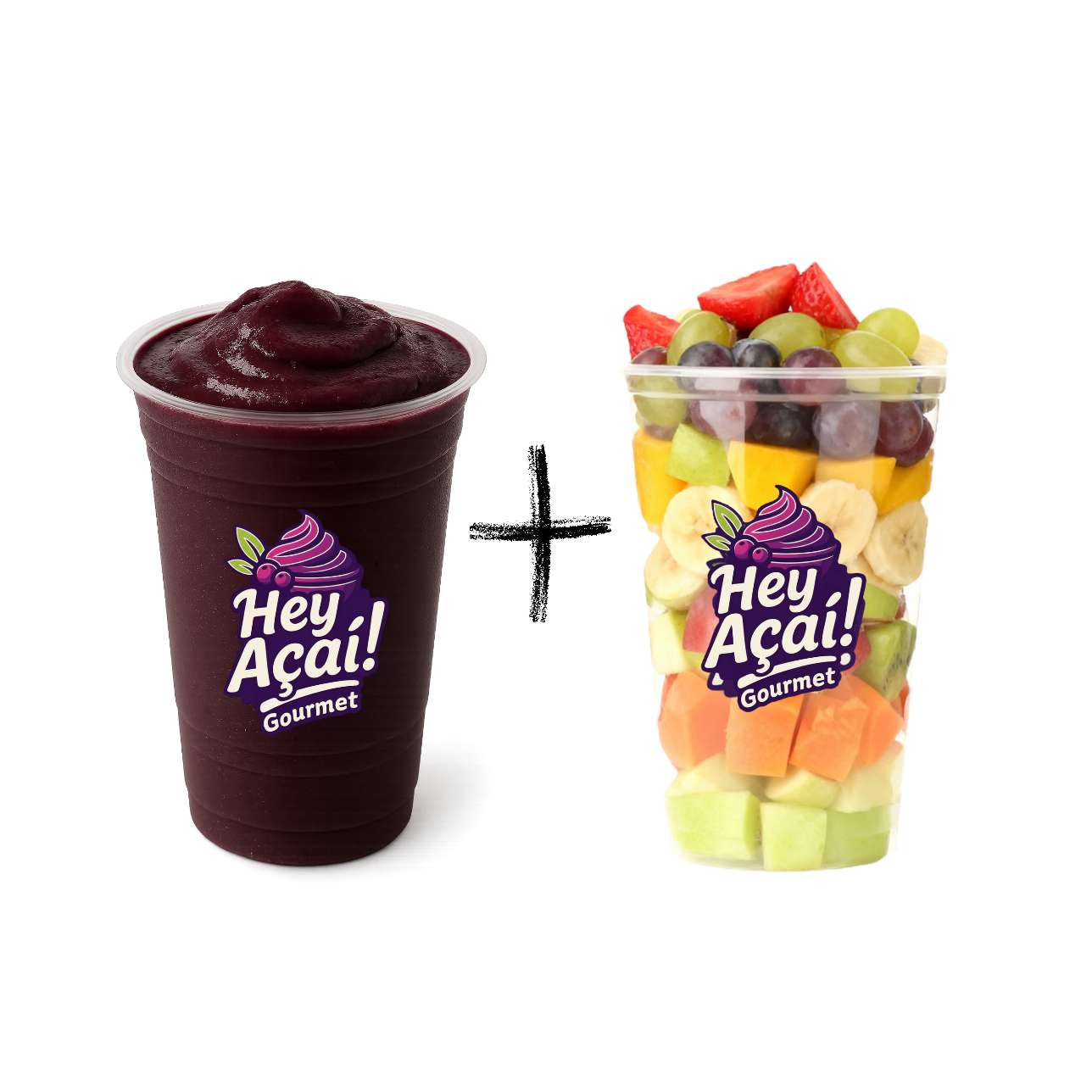 1 açaí 300ml - Leite em pó + leite condensado / 1 salada de frutas + leite condensado