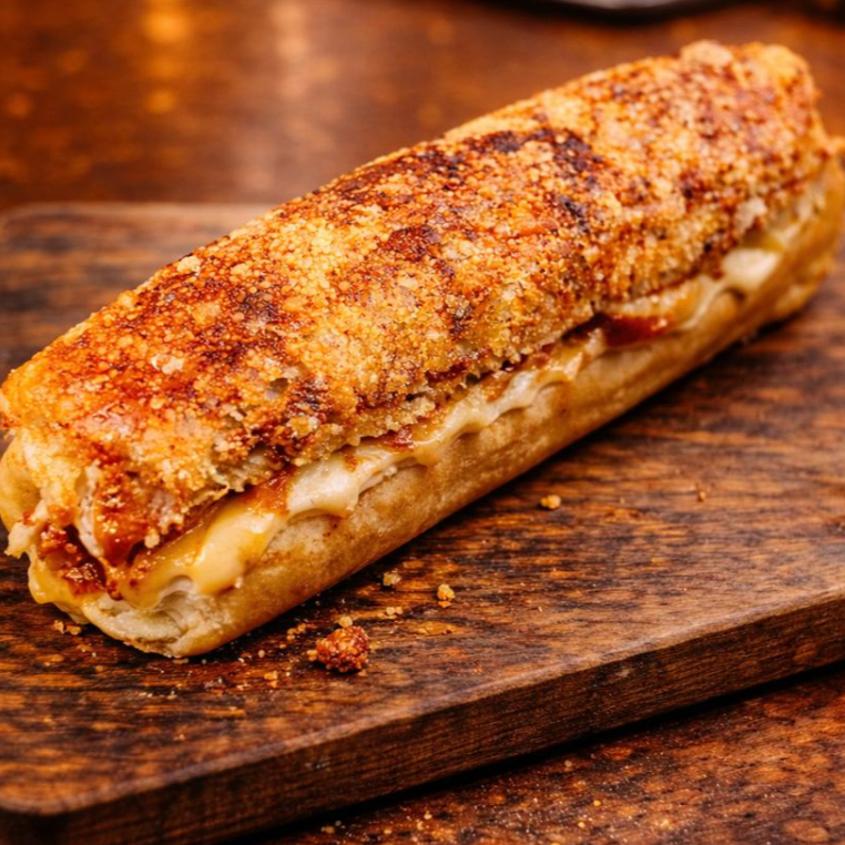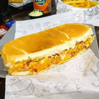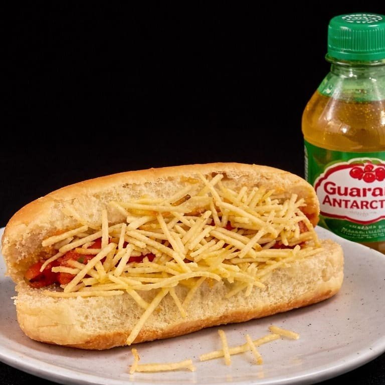 Uma crosta de muçarela com queijo parmesão envolvendo nosso pão de 20 cm prensado na chapa, delicioso molho de tomate caseiro, cheddar ou catupiry ( mandar uma observação), 02 salsichas suculentas, purê de batata cremoso, farofa de bacon, batata palha, milho, ervilha, ketchup e maionese.