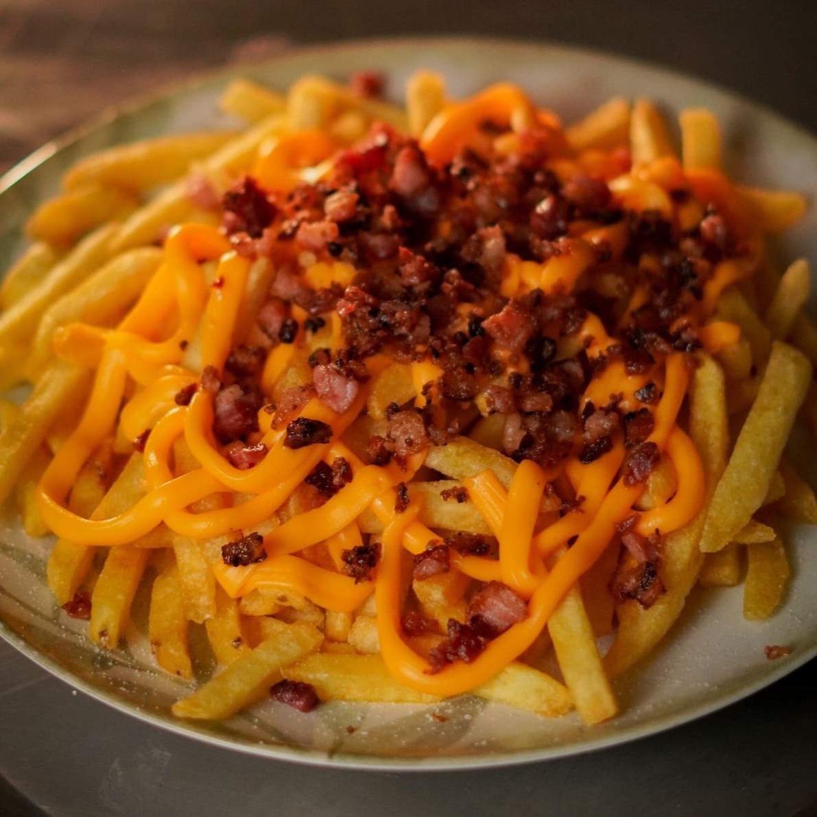 Batata Frita Com Cubos De Bacon E Cheddar