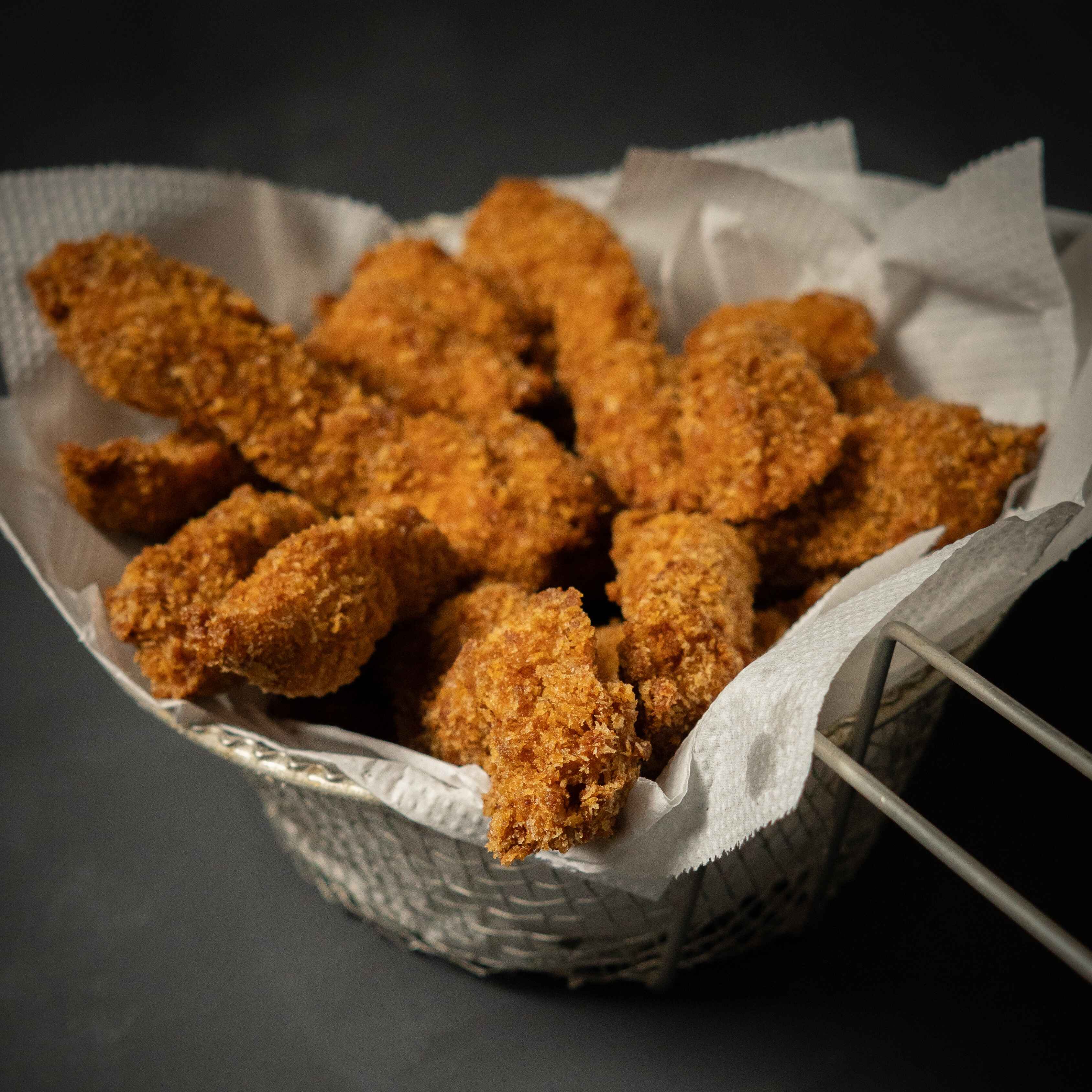 Fatias de filé de frango, macios e crocantes, empanado com farinha panko Acompanha 2 molho de sua escolha.