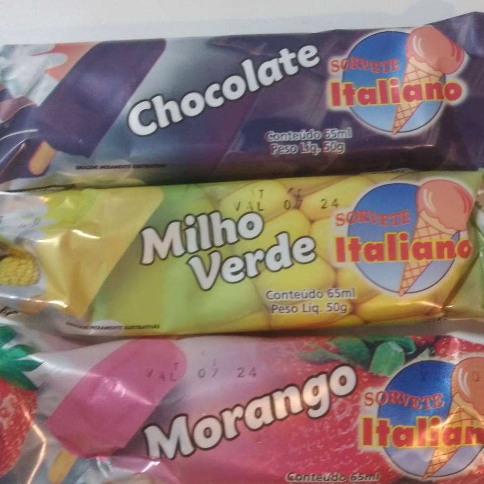Sabores: Napolitano, flocos, leite condensado, abacaxi ao leite, mousse de limão, romeu e Julieta, chocolate, morango