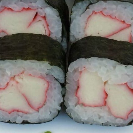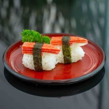 Lâmina de kani, sobreposta em bolinho de arroz 6 unidades