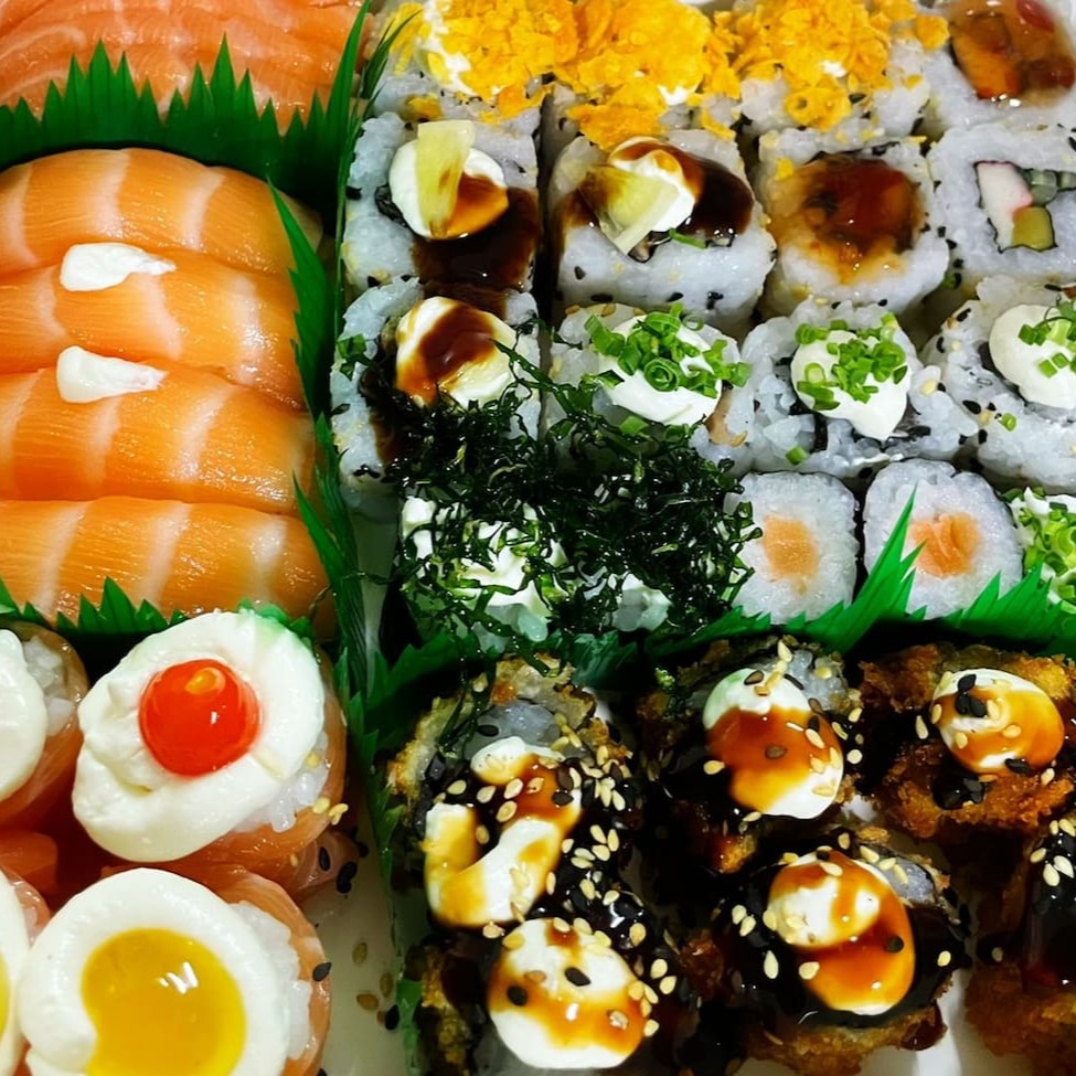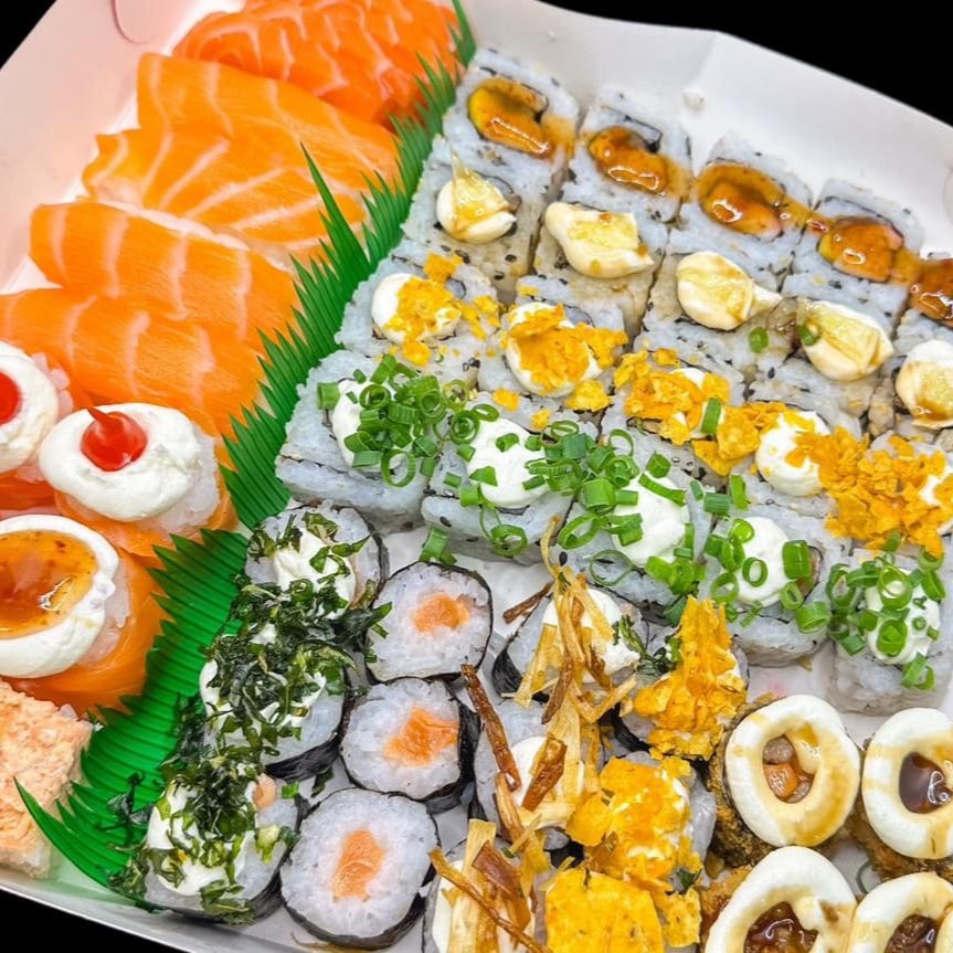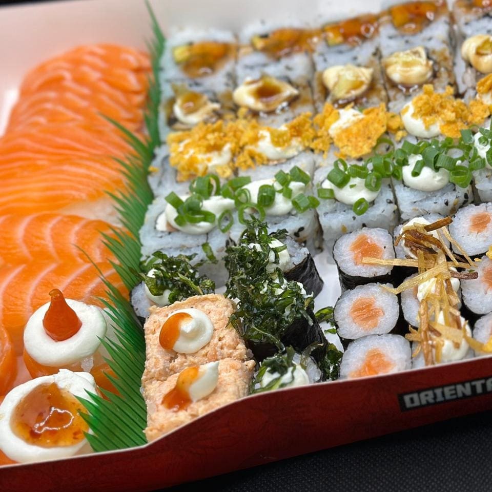 6 Sashimis 2 Oshizushi 4 Niguiris 4 Jyo 8 Hot Roll´s 16 Hossomaki Salmao 20 Uramaki Salmao