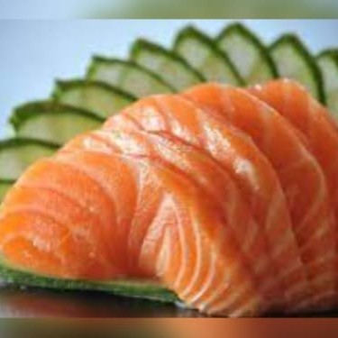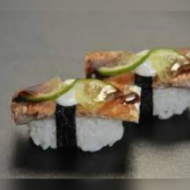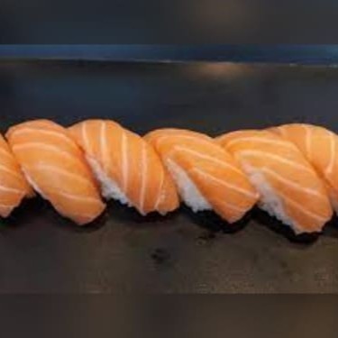 (Lâmina fina de Salmão, sobreposta em bolinho de arroz) 6 unidades