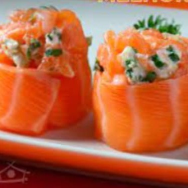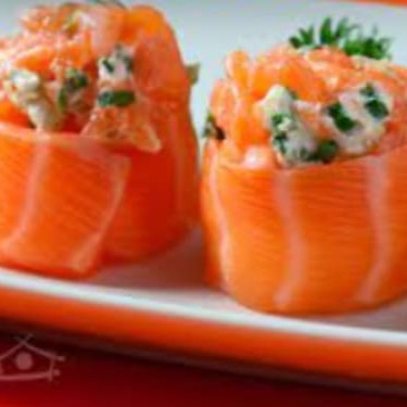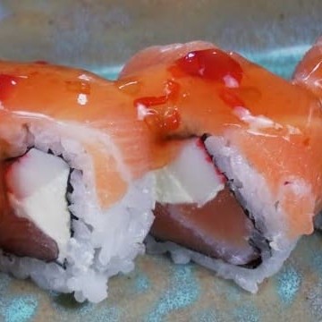 Salmão , cream cheese e pimenta sriracha e cebolinha