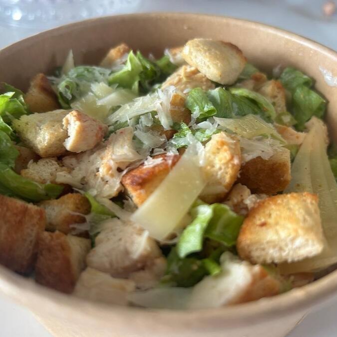 Alface americana, cubos de frango, parmesão, croutons e molho (maionese ou creme de ricota).