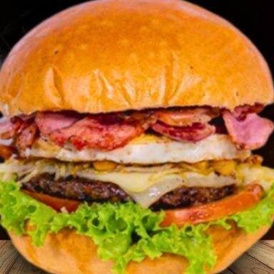 Apresentamos a você o duplo X-Bacon, um lanche irresistível da nossa categoria de Lanches. Este prato possui Um hamburguer camadas de de 90g cada, envoltas por fatias de mussarela derretida e crocantes tiras de bacon. O sabor se intensifica com a cremosidade da maionese. Para finalizar, um toque fresco de alface e o suculento tomate, todos acomodados em um pão macio e levemente tostado. Uma combinação perfeita para satisfazer sua fome!