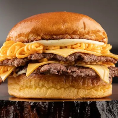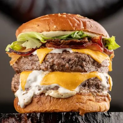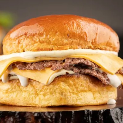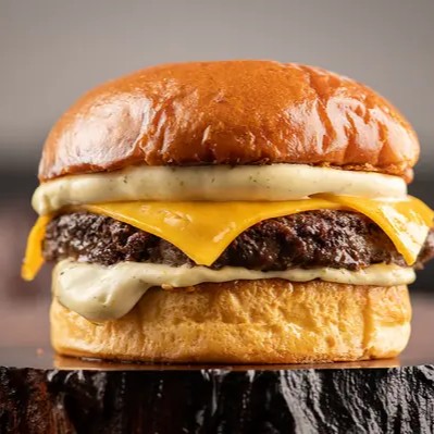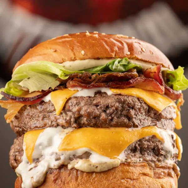 2 Carnes Angus De 50g, Pão Brioche, Queijo Cheddar Cremoso, Queijo Prato e maionese da casa.