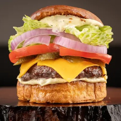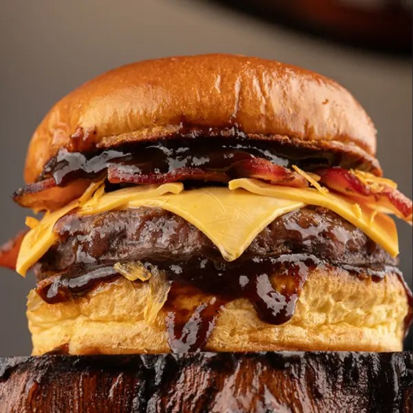 2 Carnes Angus De 100g, Pão Brioche, Queijo Cheddar Cremoso, Queijo Prato e maionese da casa.