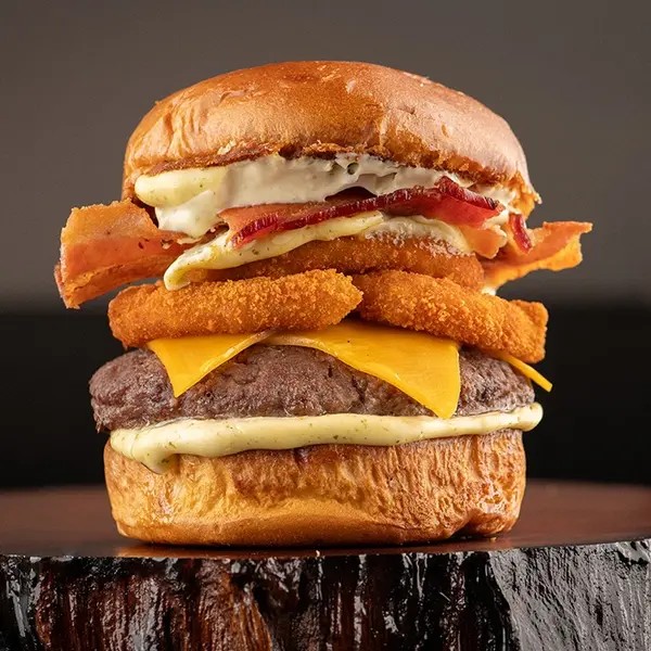 100g Blend Angus, Pão Brioche, Queijo Prato, Anéis De Cebola, Bacon E Maionese Da Casa.